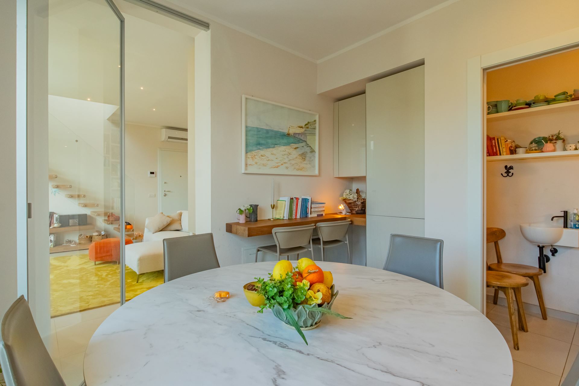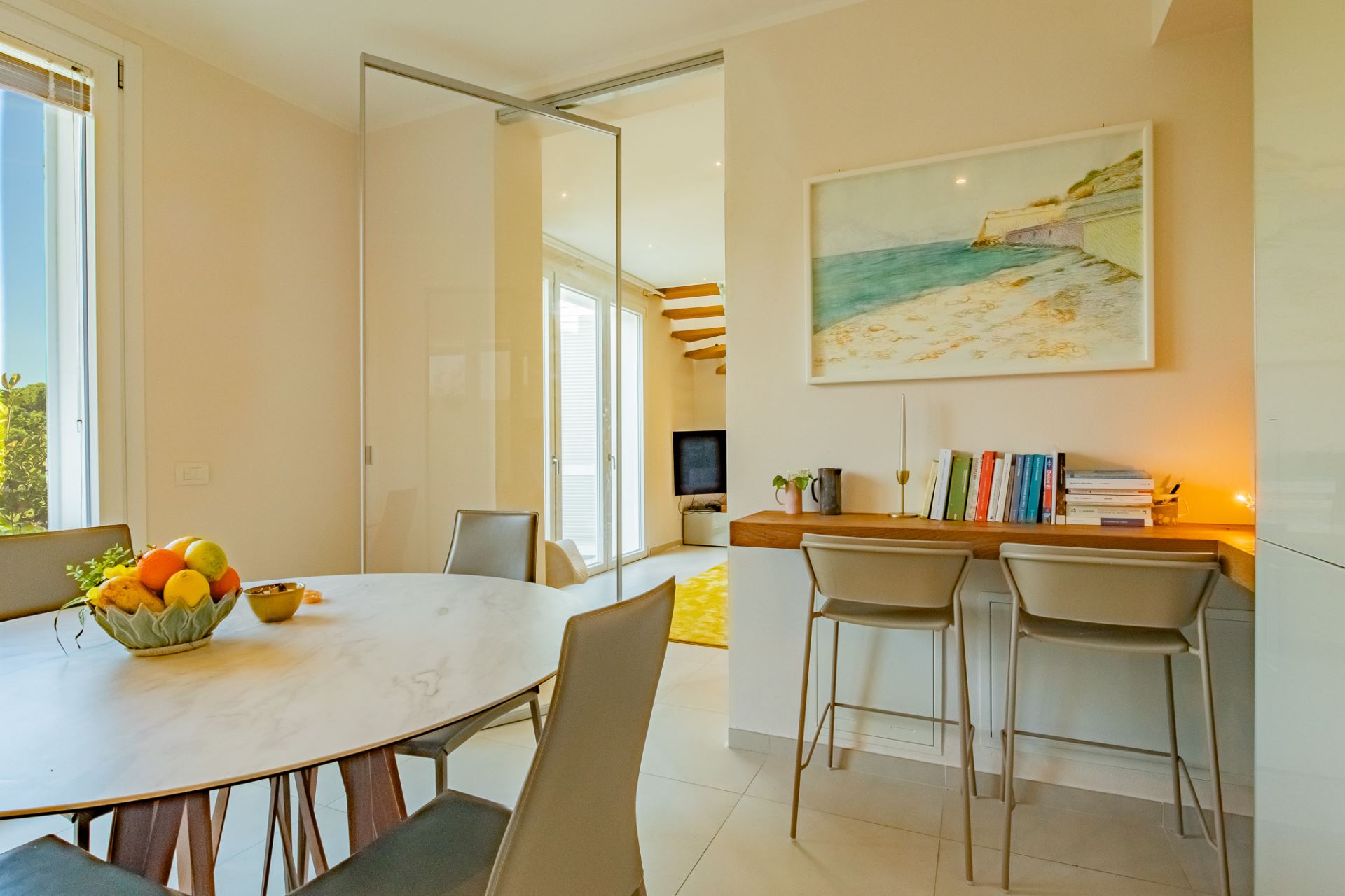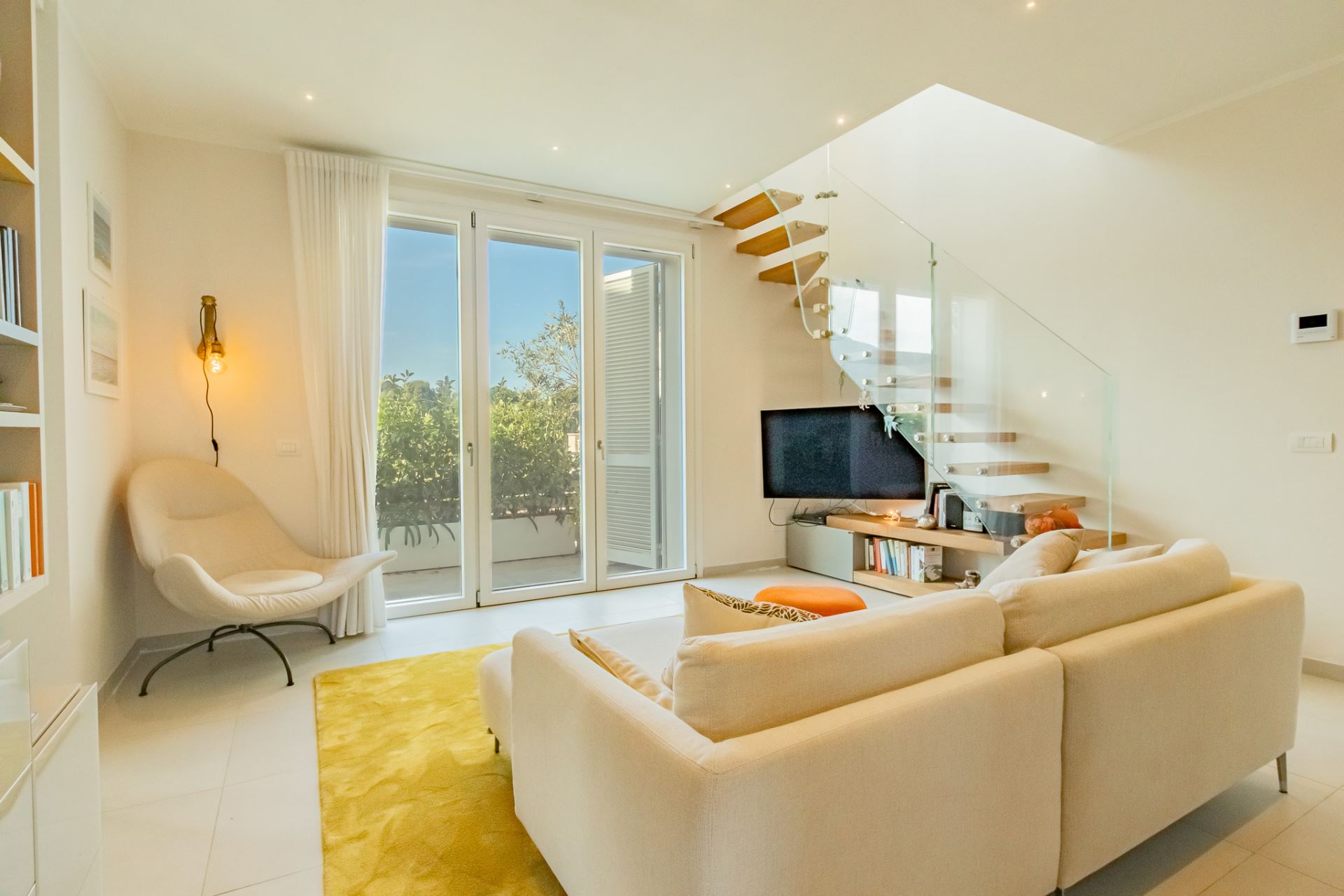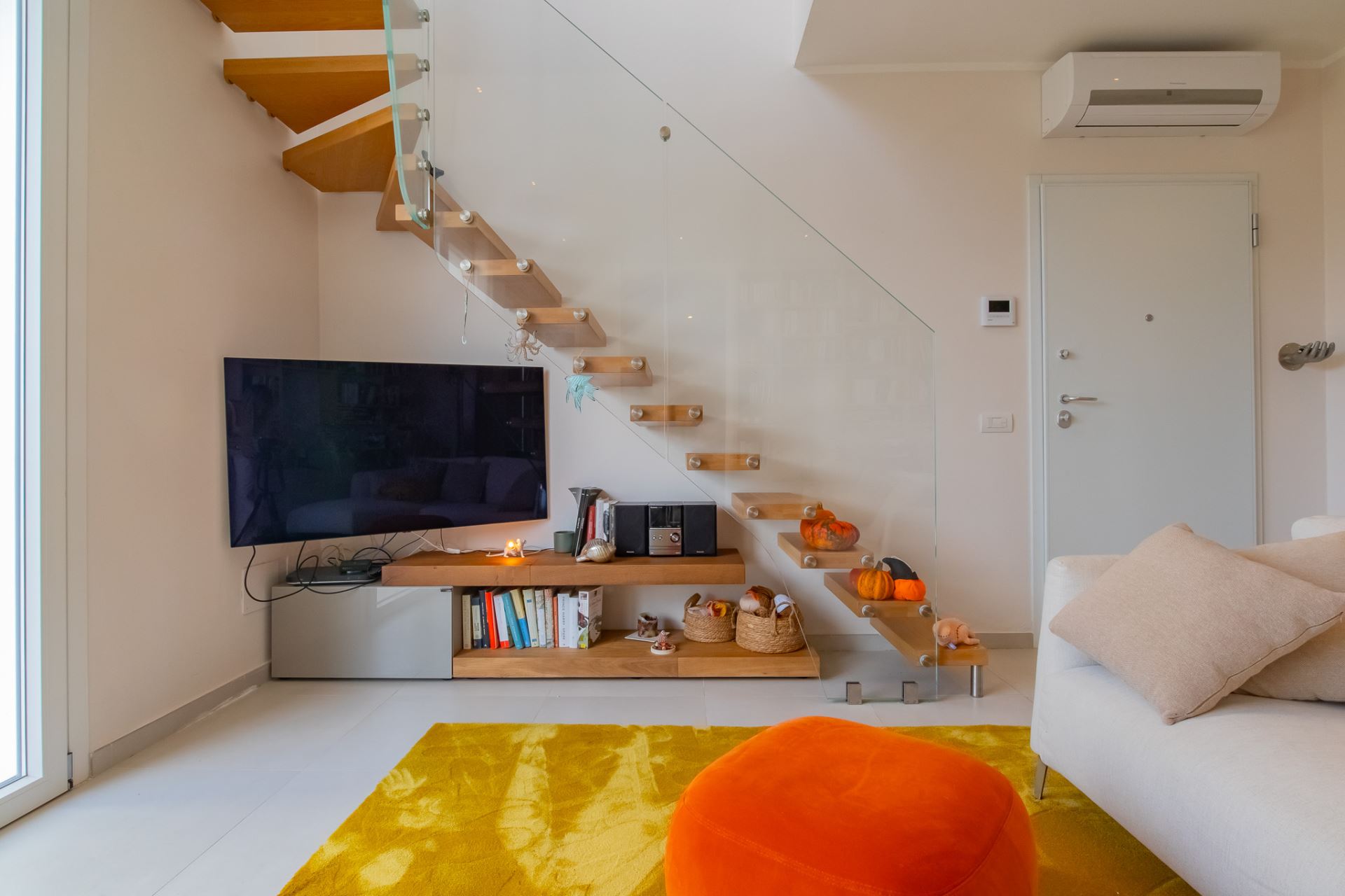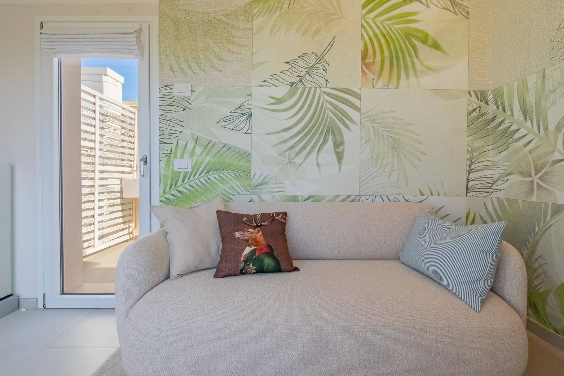L’alloggio può ospitare comodamente fino a 6 persone ed è composto da due camere da letto, due bagni, una luminosa zona giorno con sala e cucina attrezzata. Il soppalco, dotato di divano letto, offre uno spazio aggiuntivo pratico e confortevole.
