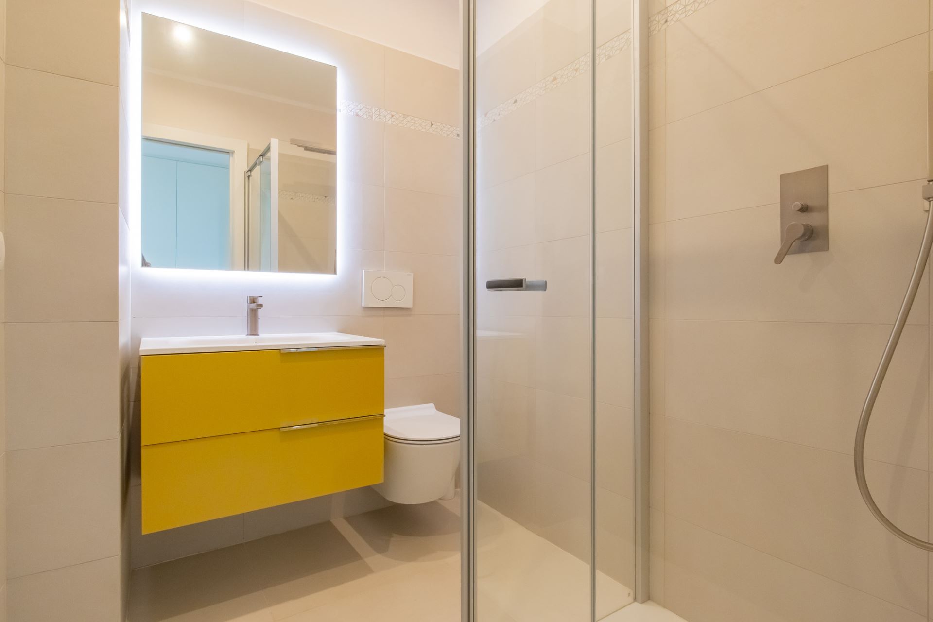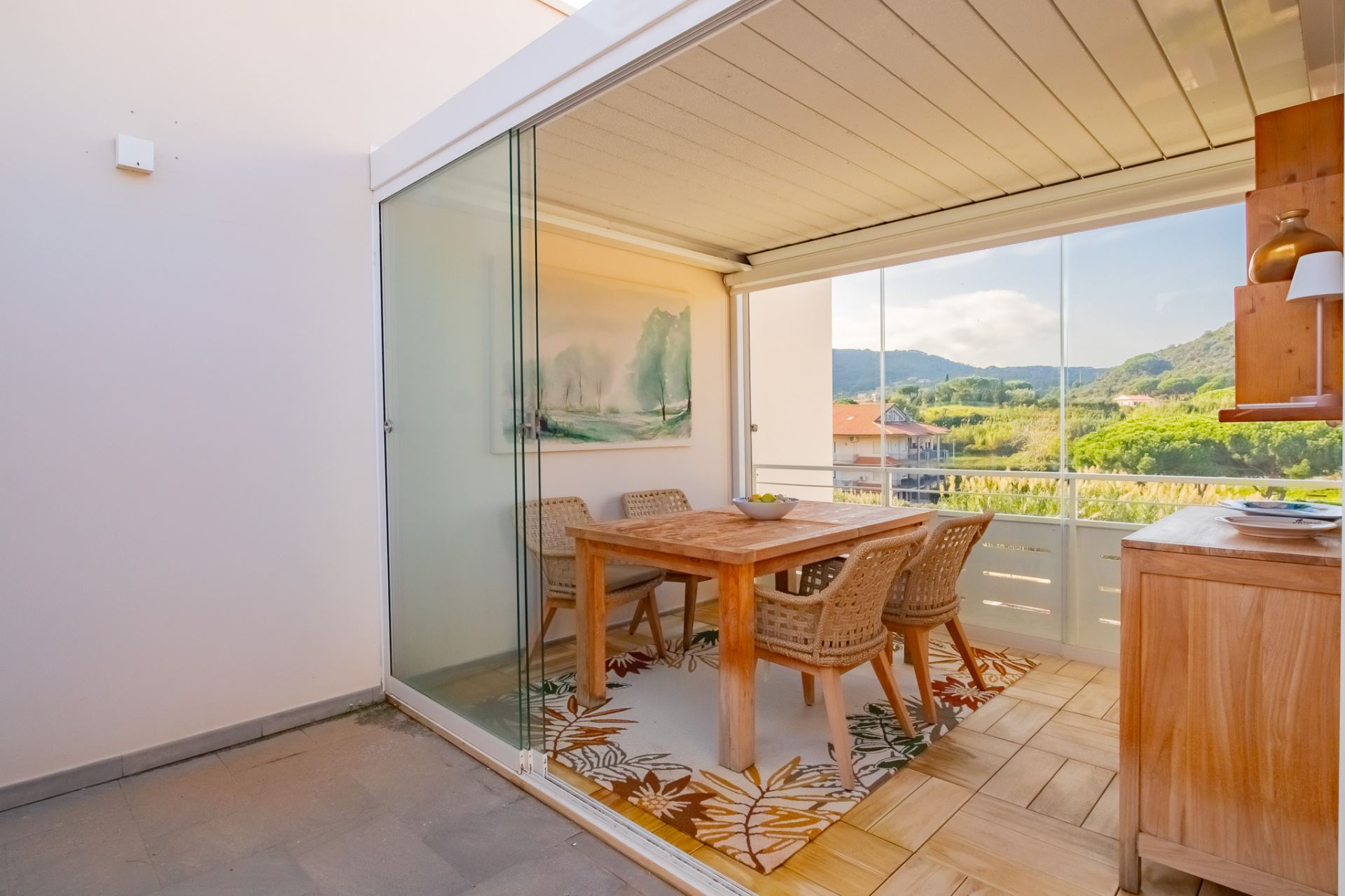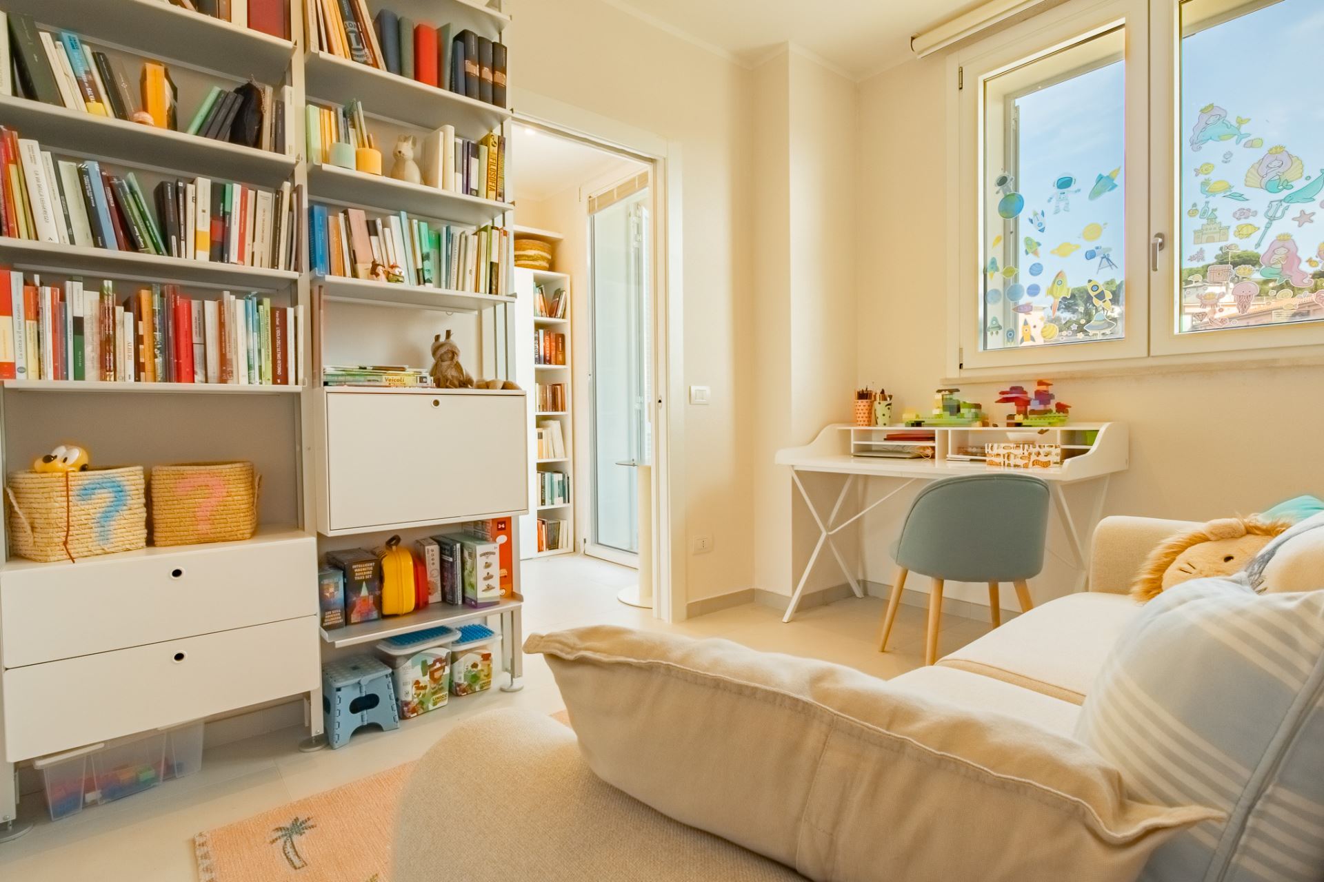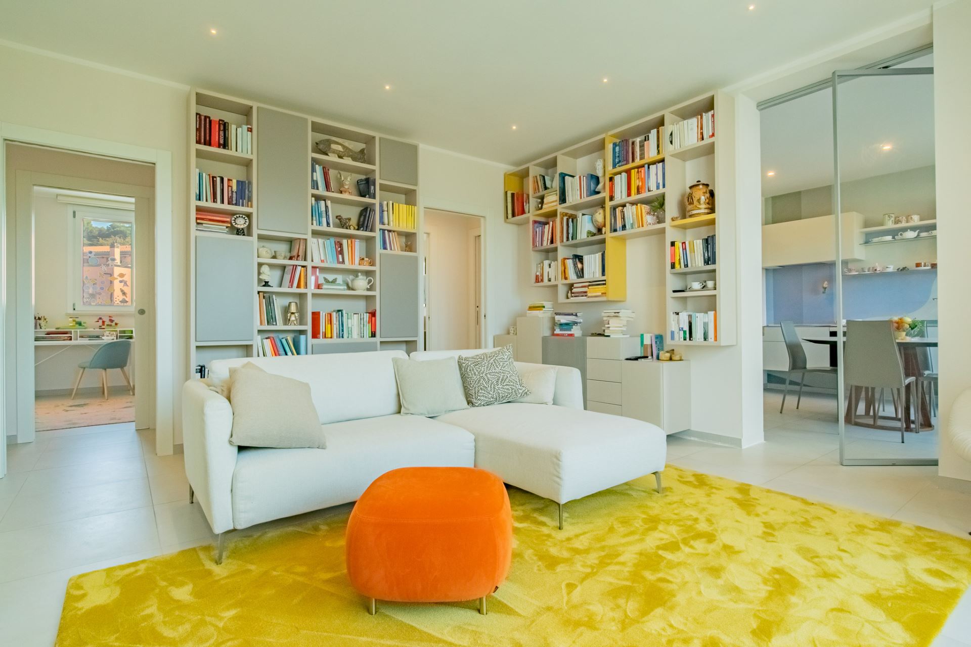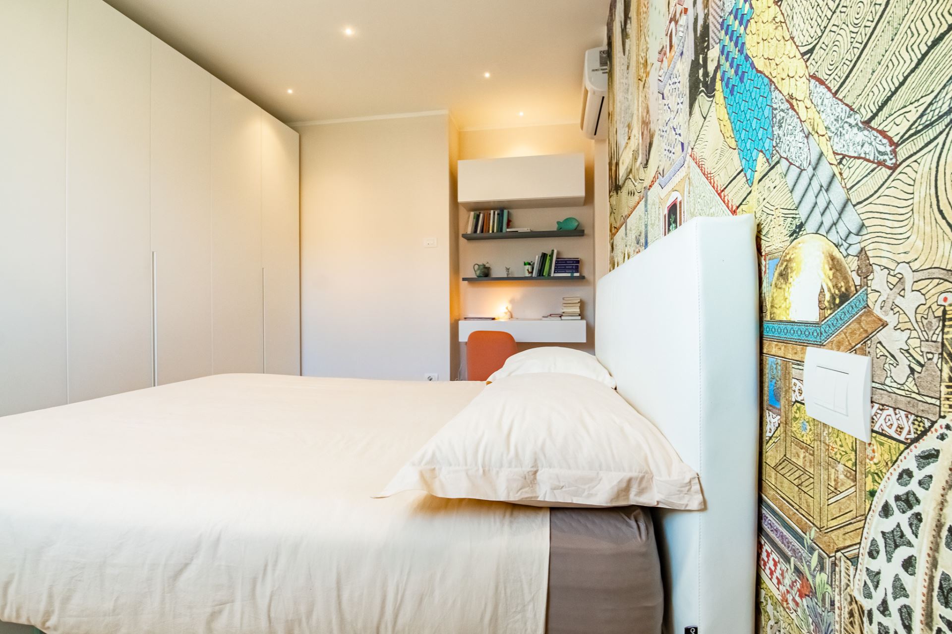 L’alloggio può ospitare comodamente fino a 6 persone ed è composto da due camere da letto, due bagni, una luminosa zona giorno con sala e cucina attrezzata. Il soppalco, dotato di divano letto, offre uno spazio aggiuntivo pratico e confortevole.